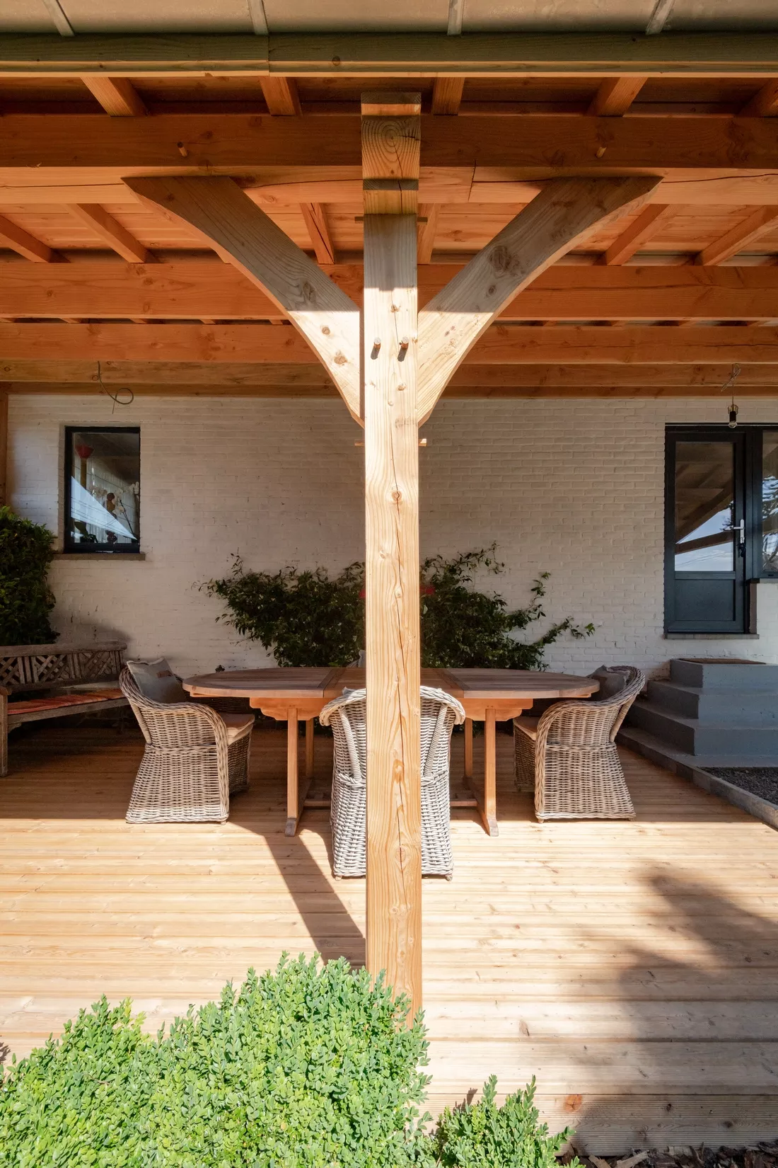 Installation d’une couverture de terrasse sur mesure et pergola pour une villa en périphérie namuroise